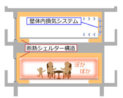 建物の各戸ごと、高性能断熱材で囲みこむ「断熱シェルター