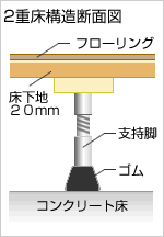 有効な2重床を採用。測定テストを繰り返し、より遮音に効果