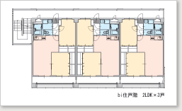 住戸部分のプランは、単身者からファミリー向けまで対応する6プランをご用意。1Kとファミリー向けプランを組み合わせることも可能で、市場ニーズに合わせたきめ細かいご提案が可能です。